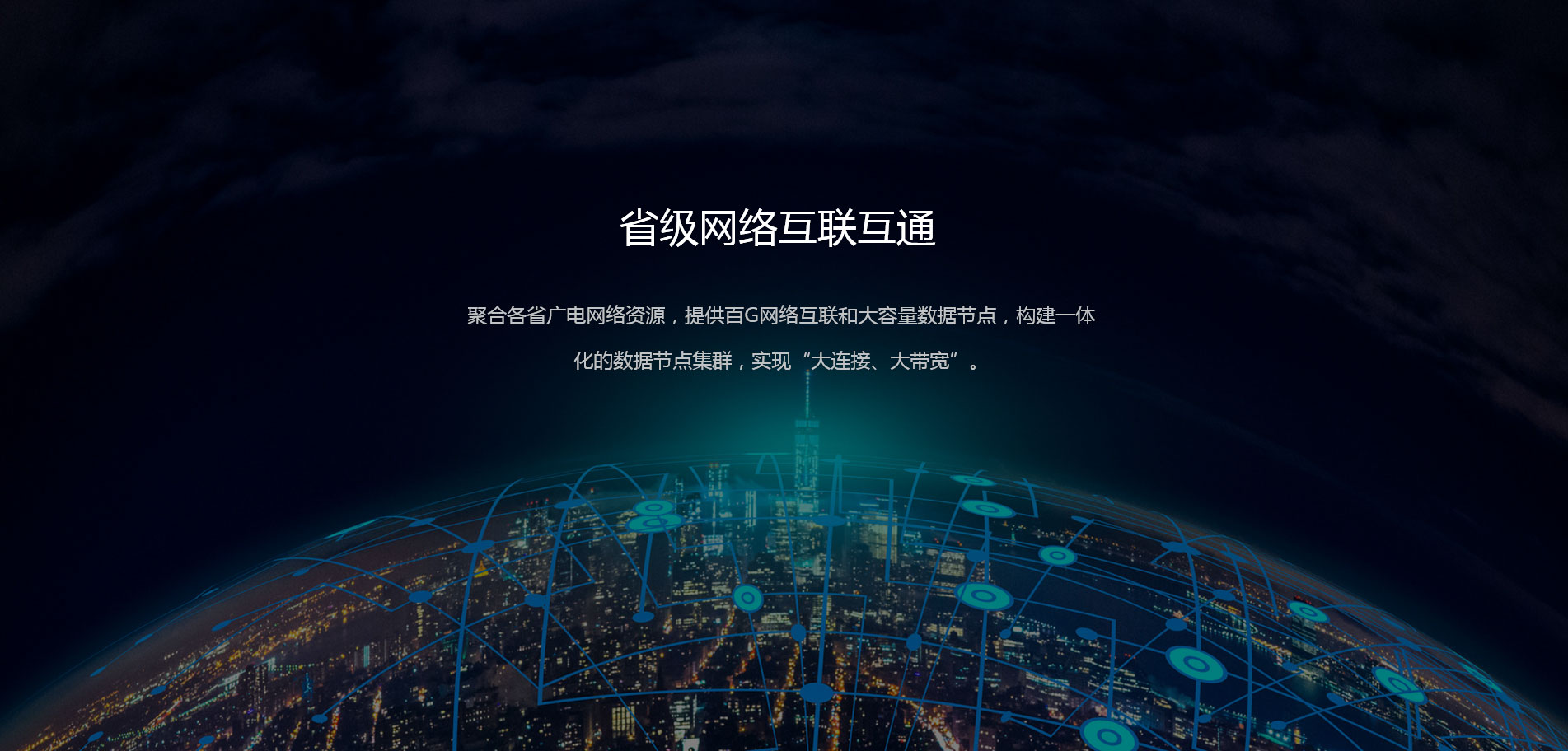 聚合各省廣電網(wǎng)絡(luò)資源,提供百G網(wǎng)絡(luò)互聯(lián),構(gòu)建全國性省際網(wǎng)絡(luò)互聯(lián)互通與數(shù)據(jù)節(jié)點等基礎(chǔ)服務(wù);基于大連接與大數(shù)據(jù)融合的業(yè)務(wù)模式,提供廣電特色的數(shù)據(jù)技術(shù)服務(wù)。